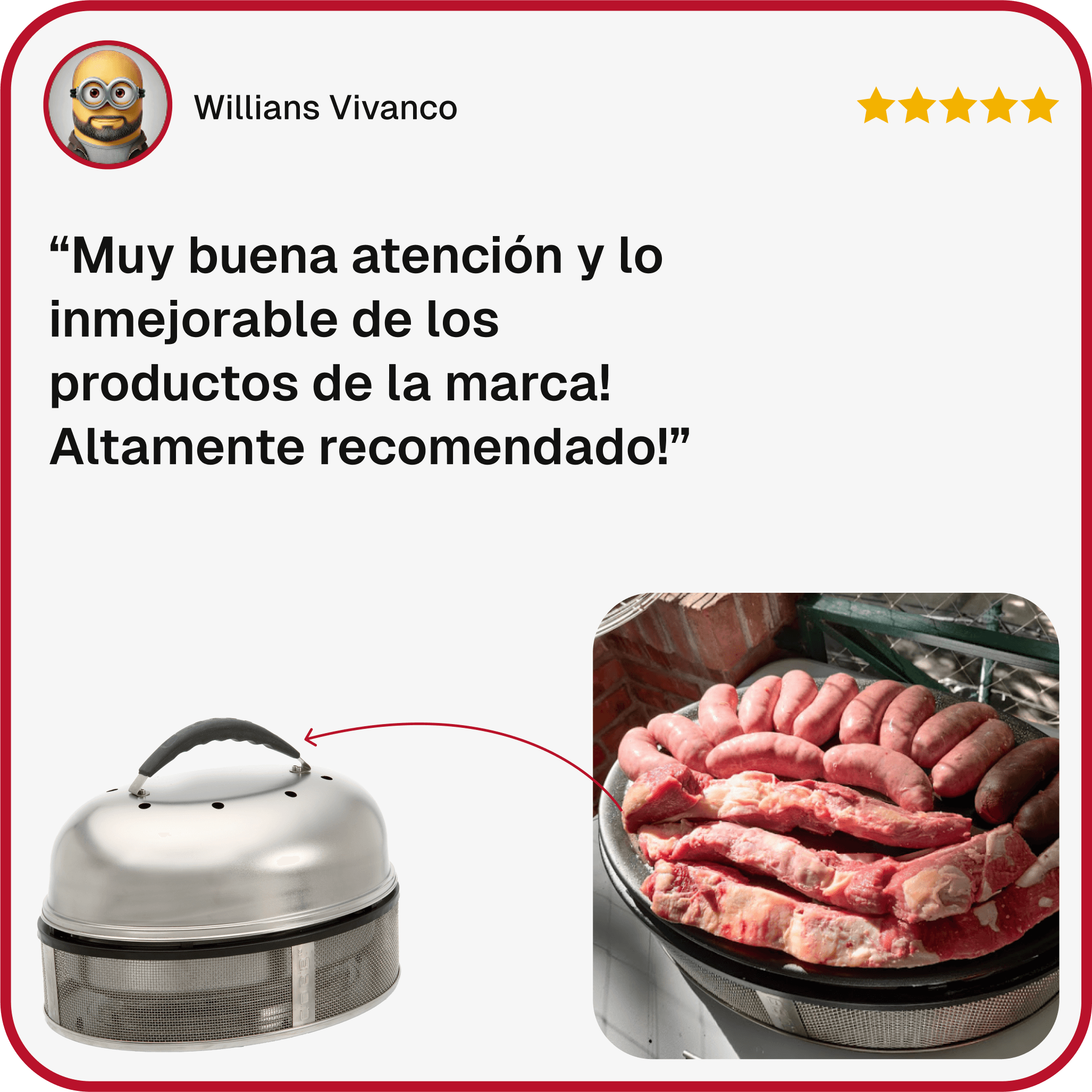 Su diseño patentado evita que la grasa de los alimentos caiga sobre las brasas y genere humo.